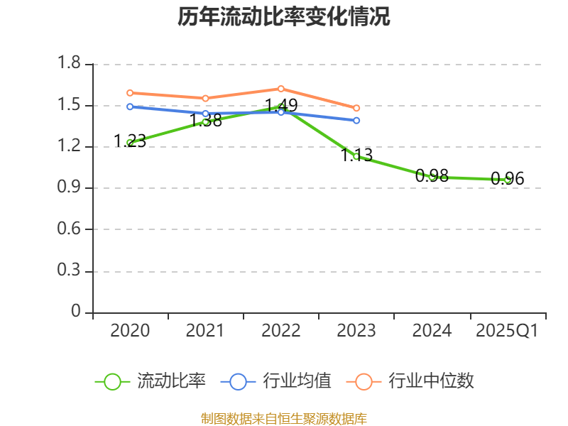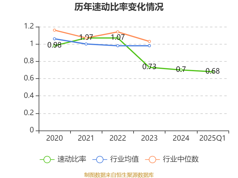 2025年第一季度,公司流动比率为0.96,速动比率为0.68。