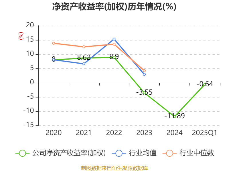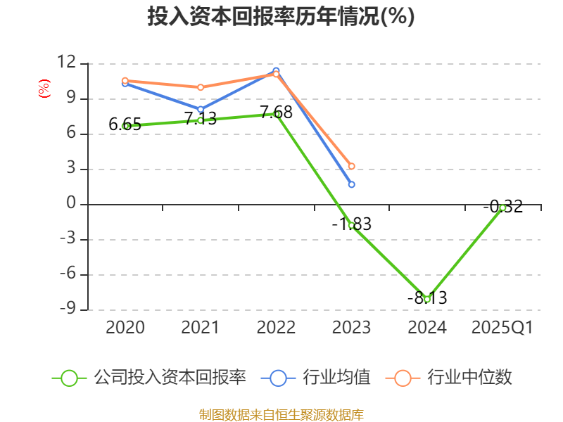 盈利能力方面, 2025年一季度公司加权平均净资产收益率为-0.64%,同比上升1.37个百分点。公司2025年第一季度投入资本回报率为-0.32%,较上年同期上升0.79个百分点。