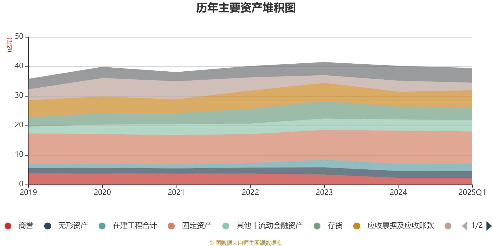 资产重大变化方面,截至2025年一季度末,公司货币资金较上年末减少31.55%,占公司总资产比重下降2.83个百分点;应收票据及应收账款较上年末增加12.6%,占公司总资产比重上升1.86个百分点;预付款项较上年末增加103.06%,占公司总资产比重上升0.56个百分点;其他非流动金融资产较上年末增加1.17%,占公司总资产比重上升0.29个百分点。