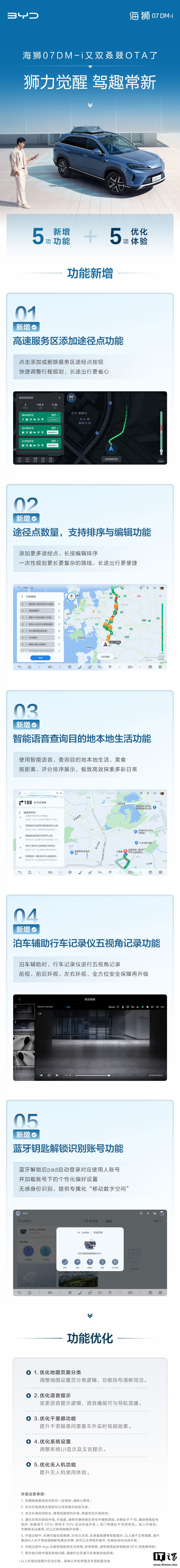 IT之家附比亚迪海狮 07DM-i 汽车本次 OTA 升级内容如下: