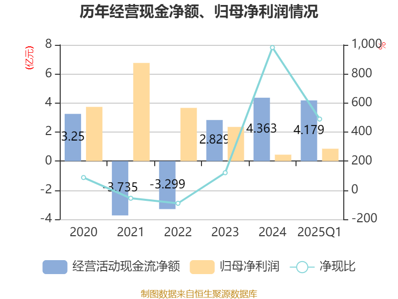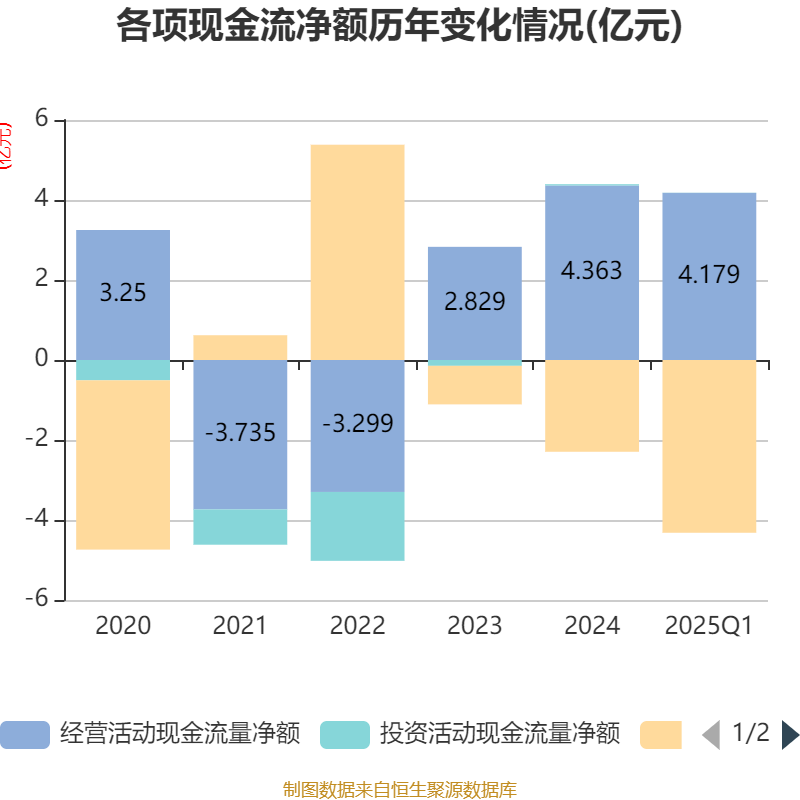 截至2025年一季度末,公司经营活动现金流净额为4.18亿元,同比下降1.95%;筹资活动现金流净额-4.32亿元华霖资本,同比减少1.84亿元;投资活动现金流净额45.66万元,上年同期为287.6万元。