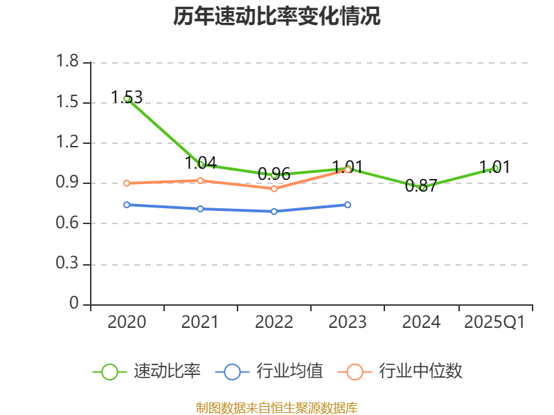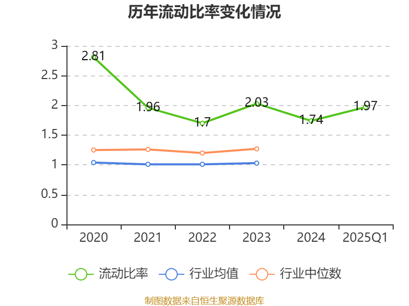 2025年第一季度,公司流动比率为1.97,速动比率为1.01。