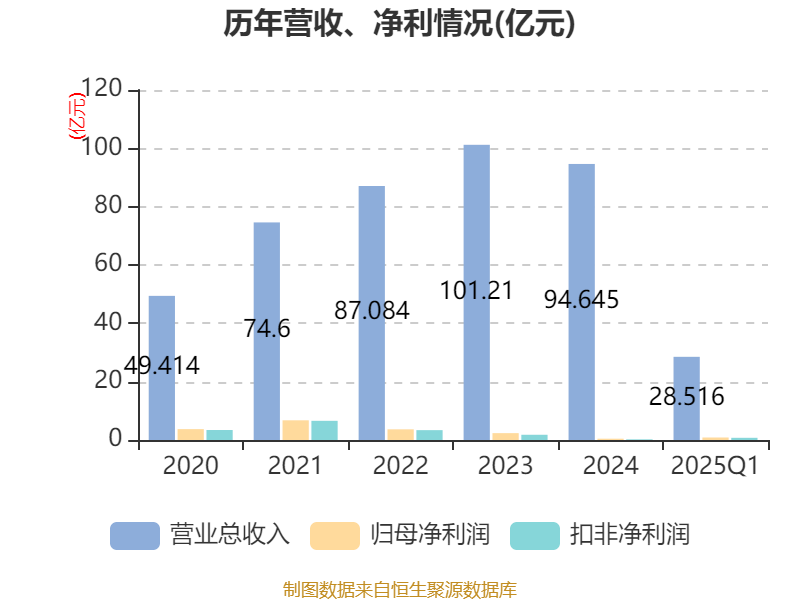 资产重大变化方面,截至2025年一季度末,公司货币资金较上年末增加3.28%,占公司总资产比重上升2.89个百分点;其他流动资产较上年末减少58.46%,占公司总资产比重下降1.79个百分点;预付款项较上年末减少15.62%,占公司总资产比重下降1.23个百分点;存货较上年末减少12.24%,占公司总资产比重下降1.11个百分点。