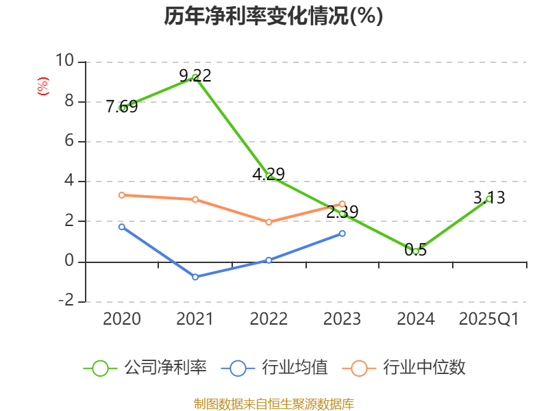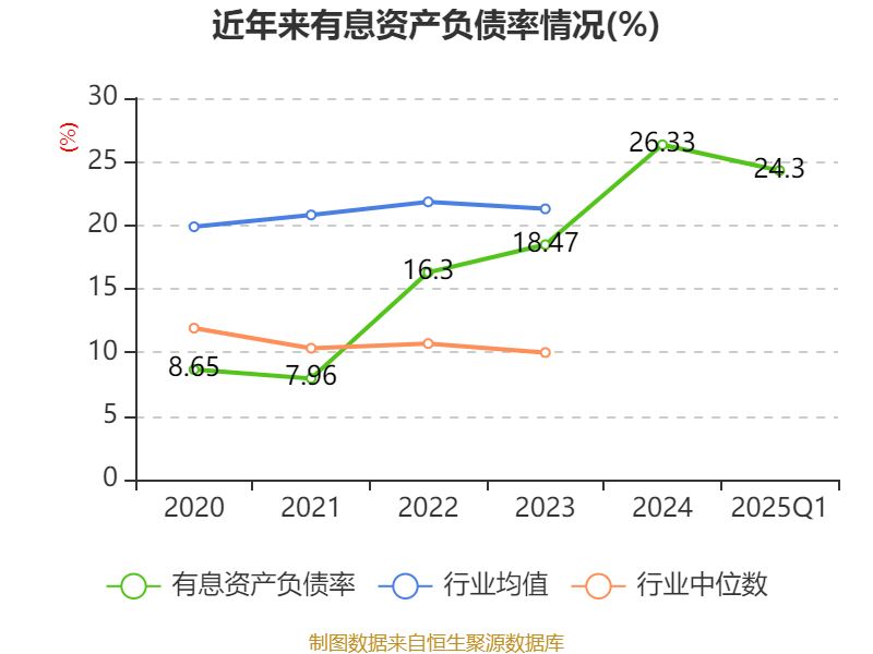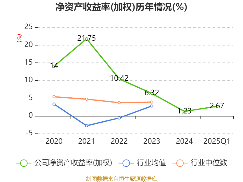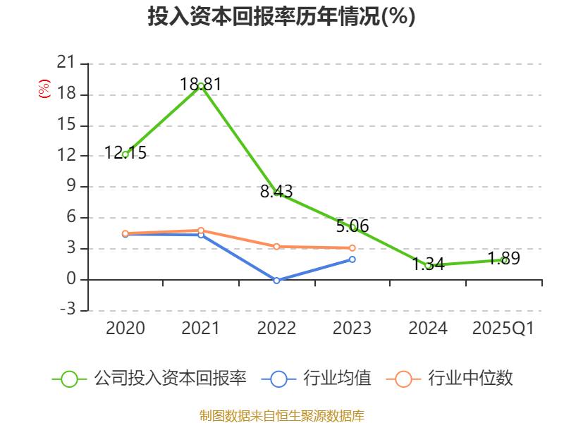 盈利能力方面, 2025年一季度公司加权平均净资产收益率为2.67%,同比下降0.69个百分点。公司2025年第一季度投入资本回报率为1.89%,较上年同期下降0.86个百分点。